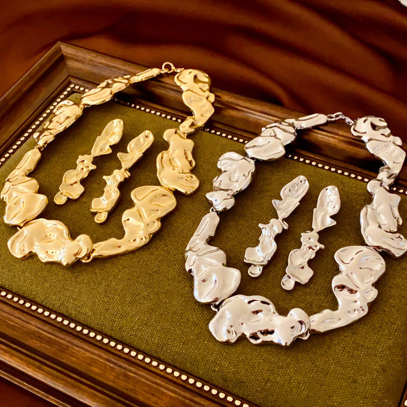 Women's High-grade Metal Lava Irregular Earrings Necklace